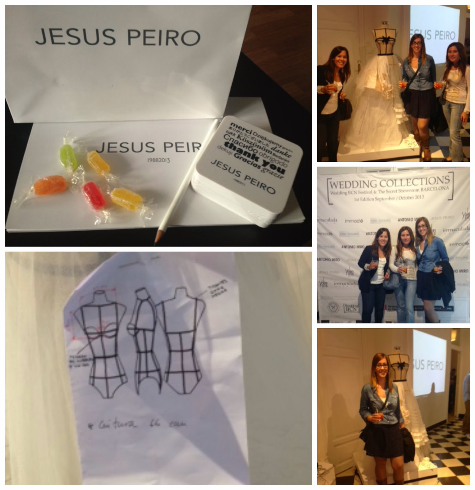 Merche Segarra, diseñadora de Jesús Peiró desde hace siete años, estuvo en el desfile y nos presentó una línea que recuerda a los antiguos ateliers, a los que quiso rendirles homenaje colocando en la pasarela a una modelo-maniquí con bocetos bordados al vestido.