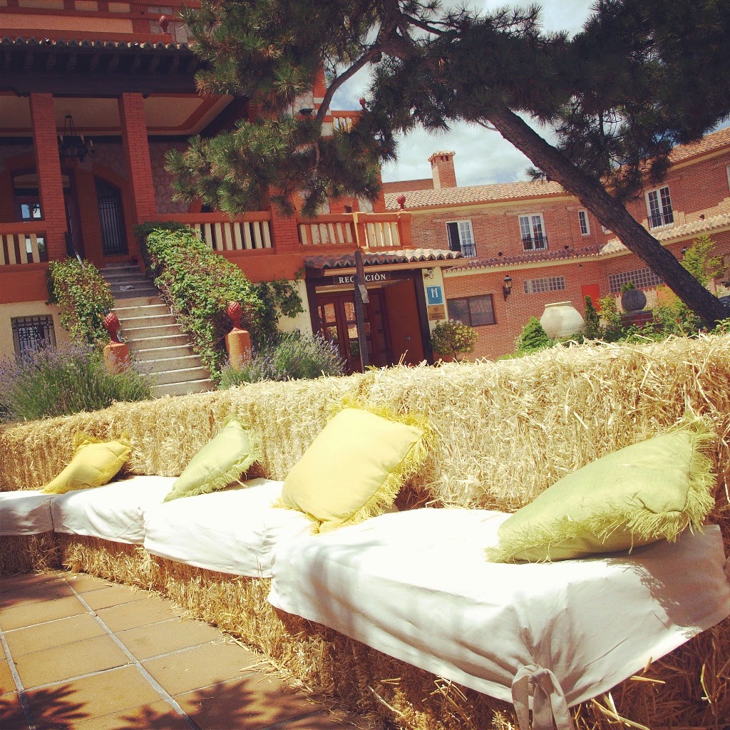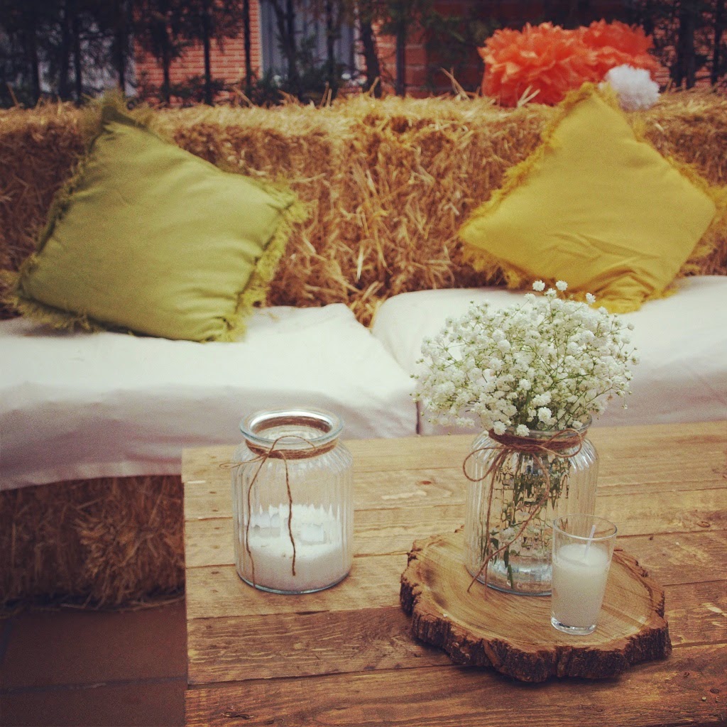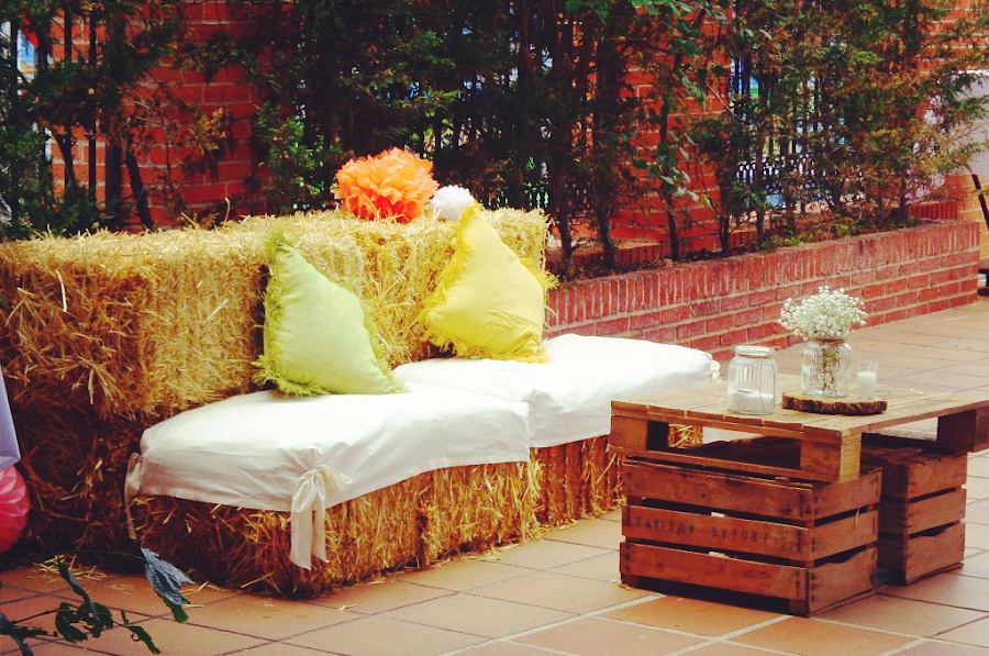 En la terraza donde se ofreció el cocktail, hicimos con balas de paja dos ambientes que quedaron así de pintones