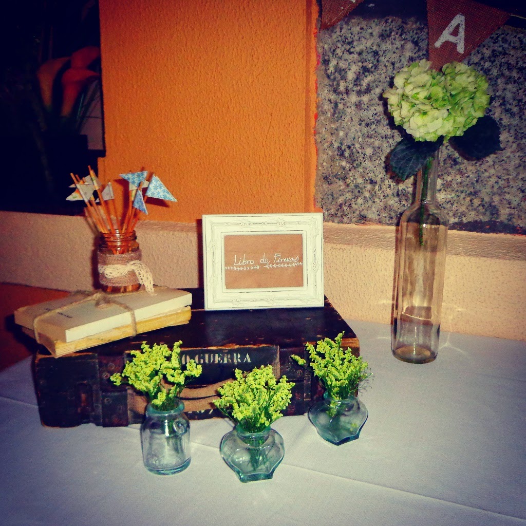 Dentro del salón, colocamos en un rinconcito el libro de firmas para que los invitados, después de la cena, pudieran acercarse a plasmar en él sus mejores deseos para la recién casada pareja