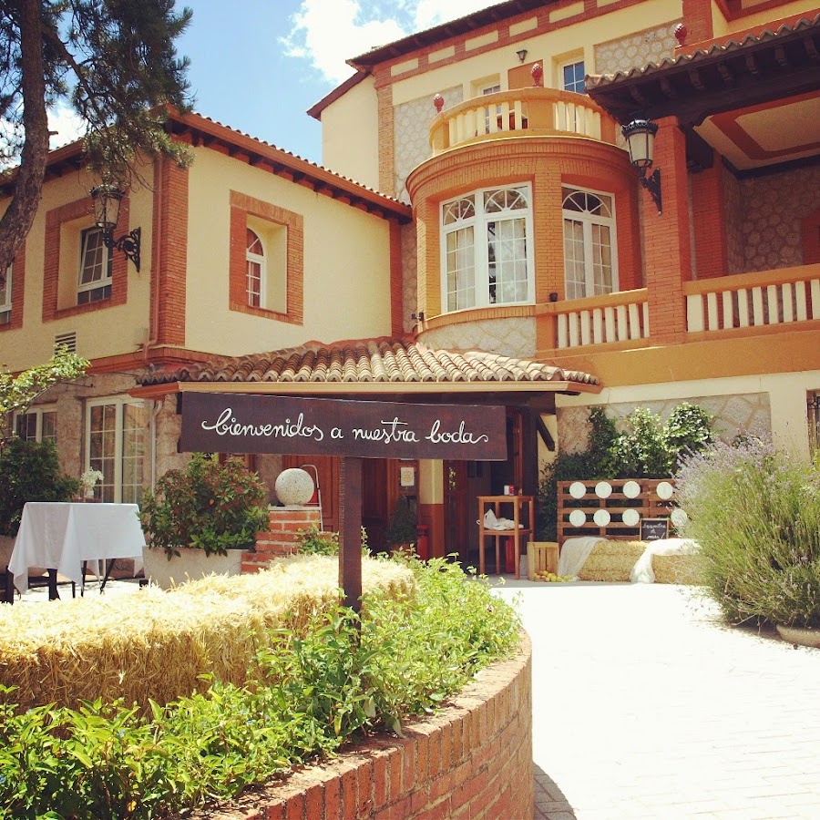 ... y es que Bea y Javi radiaban felicidad el día que se dieron el "sí, quiero" el pasado mes de Julio en la preciosa y peculiar Ermita de Nuestra Señora de los Remedios, situada a unos pocos kilómetros de la localidad madrileña de Colmenar Viejo. Rodeada de pinos y con un mirador con vistas a la Sierra del Hoyo del Manzanares, lo que más llama la atención es el pórtico aislado justo delante de la ermita custodiado por dos enormes palmeras y las fachadas del edificio repletas de coloridas petunias y geranios.