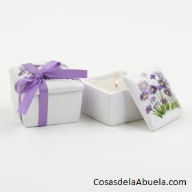 Esta caja de cerámica con una vela en su interior, solo puedo decir que me ha encantado, ya que cuando la vela se termine, tus invitadas se quedan con una caja bien bonita para guardar pendientes, anillos o lo que ellas quieran.