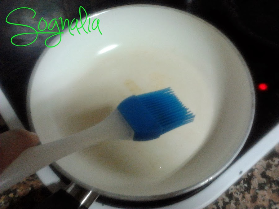 Muy importante, como en todas las comidas, utilizar el mínimo aceite y expandirlo con la brocha de silicona.