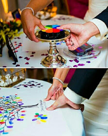 Una vez tengáis el mural impreso, necesitaréis comprar tinta de colores y no olvidéis poner un paquete de toallitas húmedas para que los invitados puedan limpiarse. Y ¡Voliá! Ya sólo falta enmarcar el mural tras la boda y así poder conservar el mejor recuerdo de vuestros invitados :)