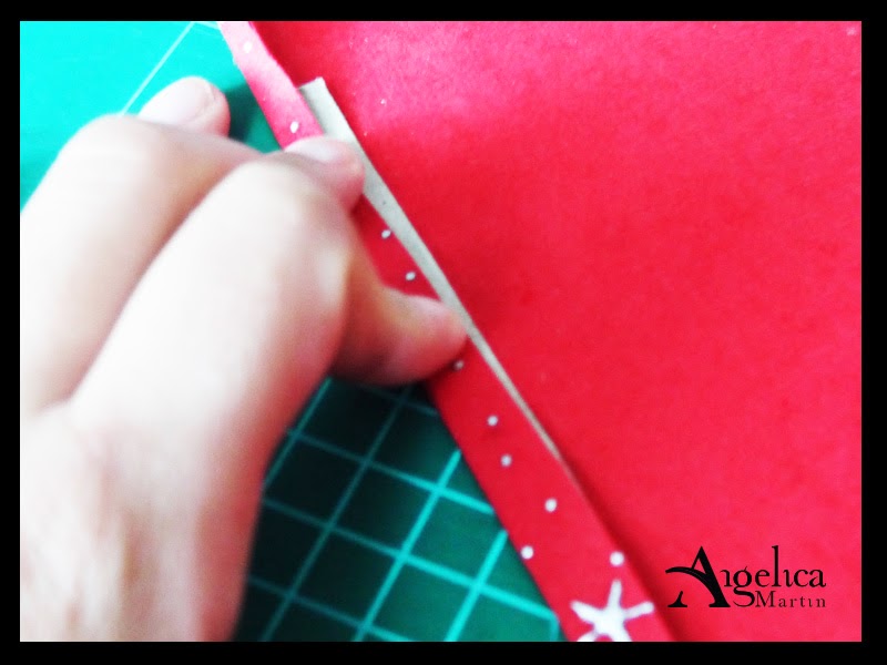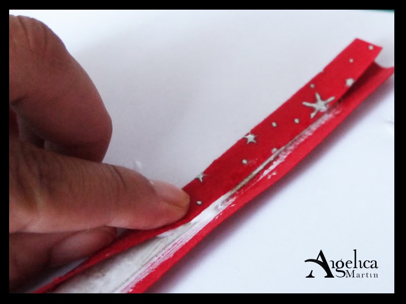 Terminaremos echando un poquito de cola encima para terminar de pegar la otra parte de nuestro papel decorativo. ¡Ya tenemos nuestra tira forrada! :)