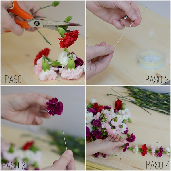 - 50-75 claveles pequeños (dependiendo del tamaño de guirnalda que queramos)