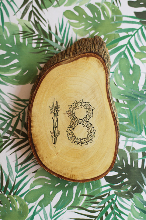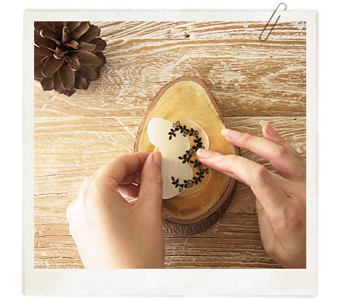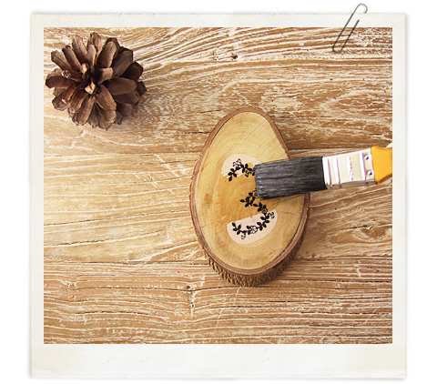 Ponemos un poco de barniz sobre la madera para que pegue mejor y pegamos el número sobre ella.