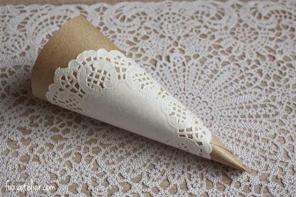 CONOS PARA EL ARROZ O CONFETI Hacemos un divertido cono de papel, para poder guardar el arroz, el confetí o lo que queramos para después de la ceremonia. una manulidad muy fácil de hacer y que va a encantar en cualquier boda. SUSCRÍBETE AL CANAL DE YOUTUBE AQUÍ: http://goo.gl/9maFrD Materiales: Tijeras, Pegamento, blondas, papel craft. - Hacer cuadrados con el papel de 20x20cm - Hacemos un cono y ...