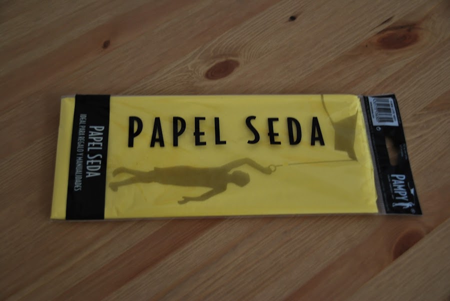 Los materiales necesarios son: papel de seda (evidentemente), tijeras y cinta o cuerda. Este que veis en la imagen concretamente es de los chinos y me ha costado 79 céntimos (10 capas).