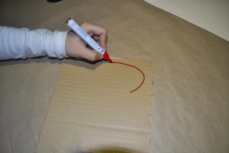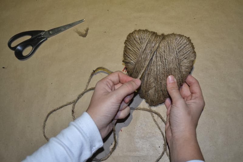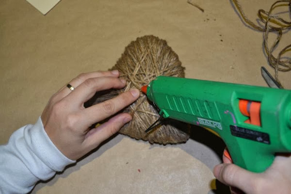 Una vez lo tenemos cubierto y ya no se ve el cartón cortamos la cuerda y la pegamos por la parte de detrás.