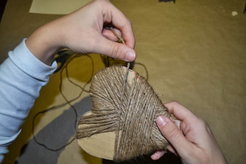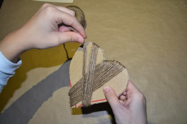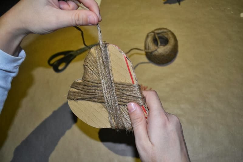 Comenzando desde el centro del corazón vamos cubriéndolo todo con la cuerda.
