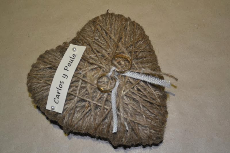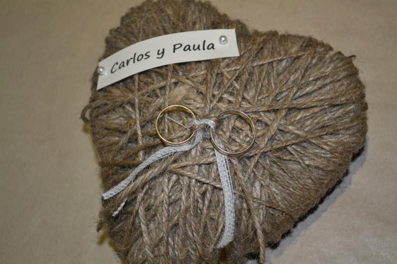 El porta alianzas se lo regalé a Paula y Carlos que se casan en 4 mesecitos y ella es seguidora del blog. Me comentó que iría a la charla y como tenia que hacer el porta alianzas para enseñarlo allí se me ocurrió que seria buena idea tener un detalle con ella. Así que espero que le haya gustado, jeje