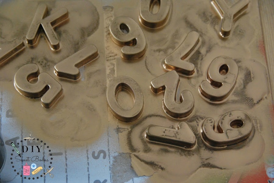 El siguiente paso es, colocar las letras y los números sobre una superficie de trabajo que se pueda manchar (yo he cogido el mismo cartón donde venían) y ¡a pintar! Os recomiendo que le déis varias capas dejando secar un rato entre aplicaciones o bien, desde el principio le déis una imprimación que hará que la pintura se fije mucho mejor.
