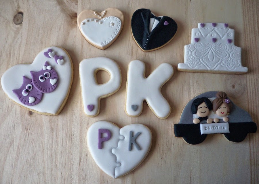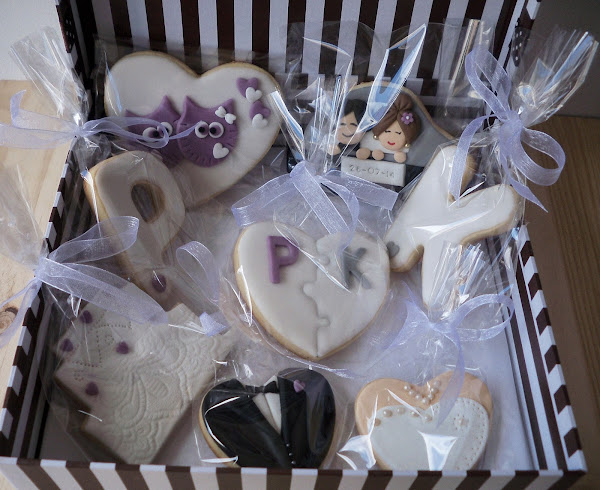 Hace unas semanas una amiga me pidió si podía prepararle unas galletas para regalar a unos novios. Ella tenía algunas ideas, yo le ofrecí otras y llegamos a un acuerdo.