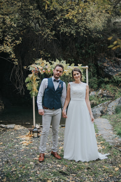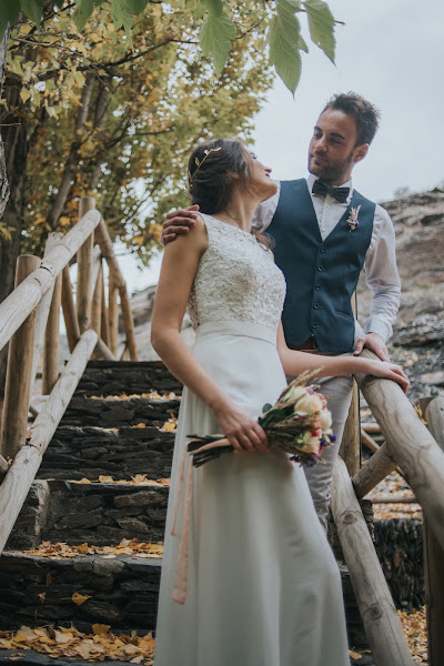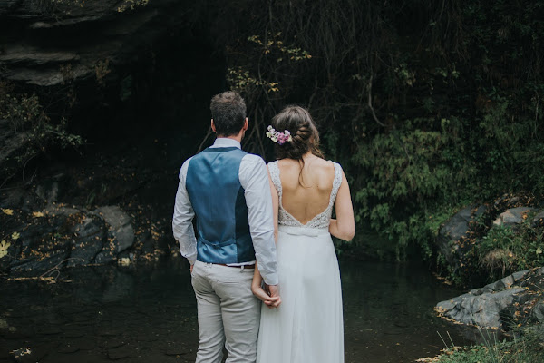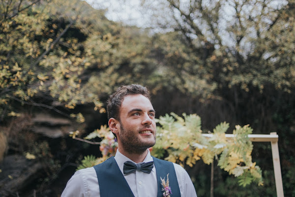 Sergi Regal se encargó de crear unos estilismos maravillosos tanto para la novia con un vestido fluido con un gran escote en la espalda acabado en un bonito detalle en forma de lazo, como para el novio, con un look informal compuesto por pantalón, camisa, chaleco y pajarita.