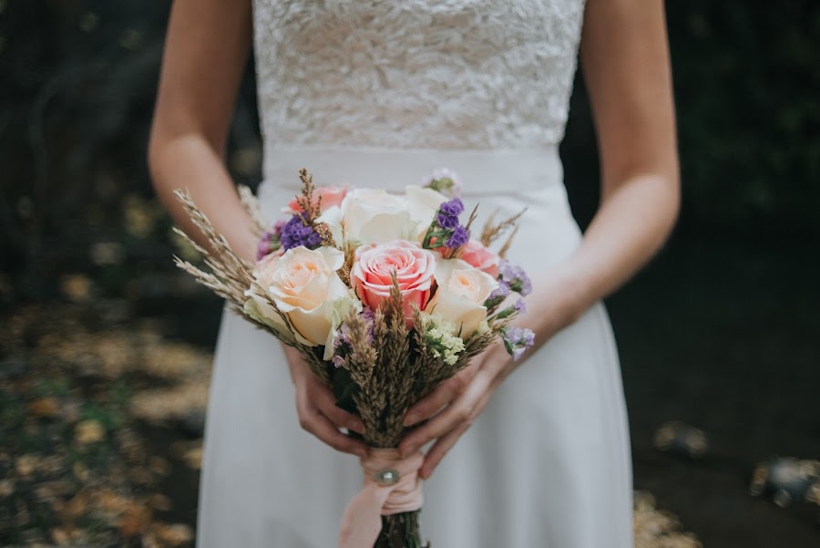 Para el ramo de novia….. rosas en las tonalidades anteriormente mencionadas, siemprevivas en diferentes colores y arundo.
