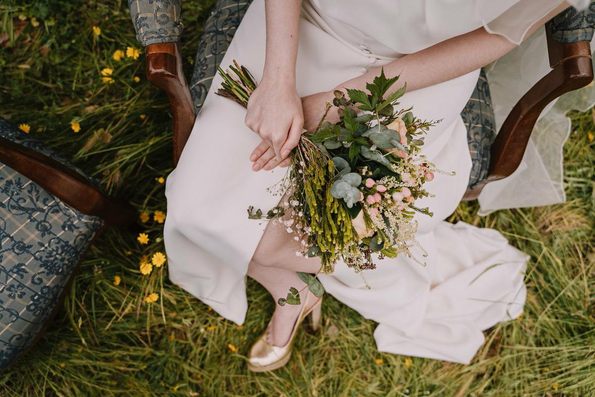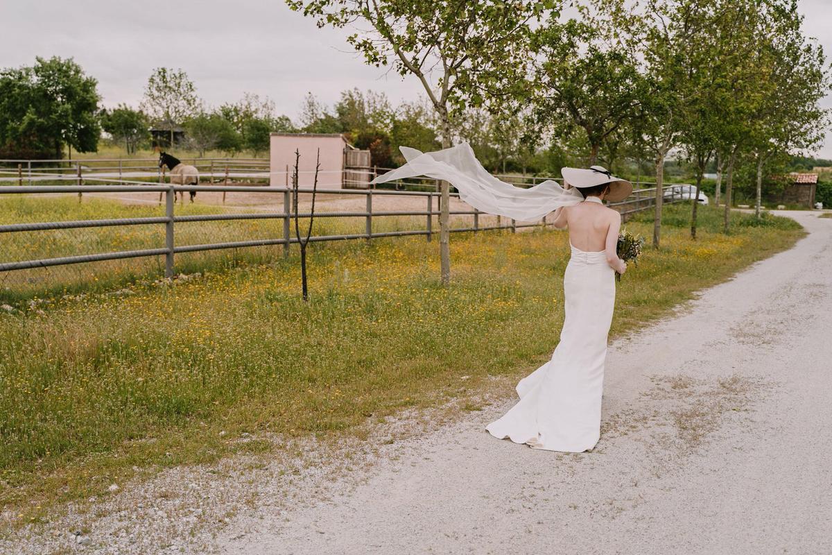 Todos los materiales utilizados en la decoración son de segunda mano, reutilizables y creados por artesanos locales. Los vestidos de novia se pueden utilizar para otros eventos y combinar con otras prendas y la decoración con flores son macetas y elementos comestibles de Km 0. Los tres ramos de novia, dos son de flor preservada y uno de flores naturales de cultivo local y de temporada.