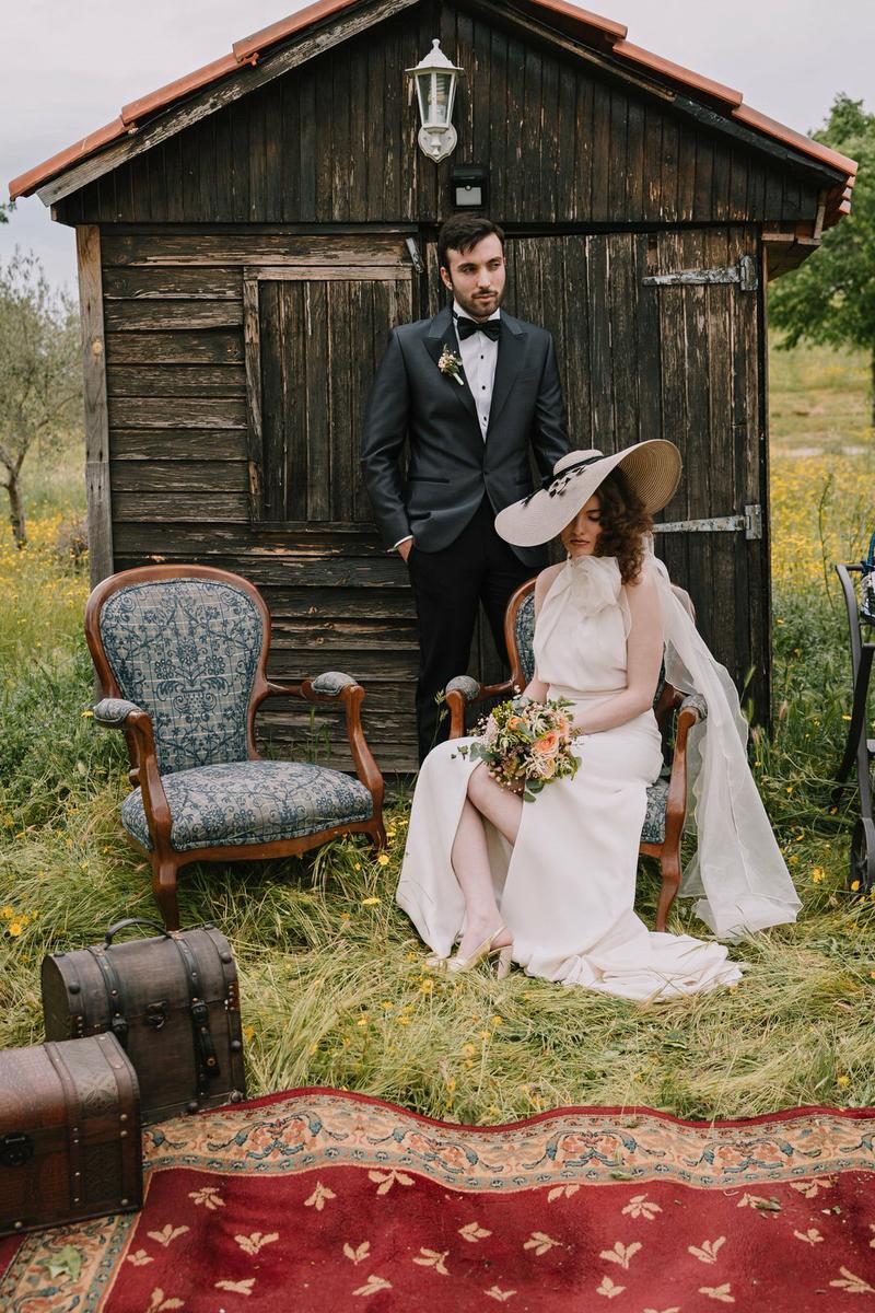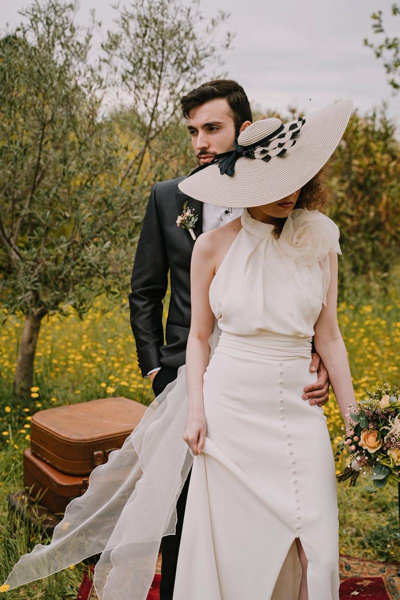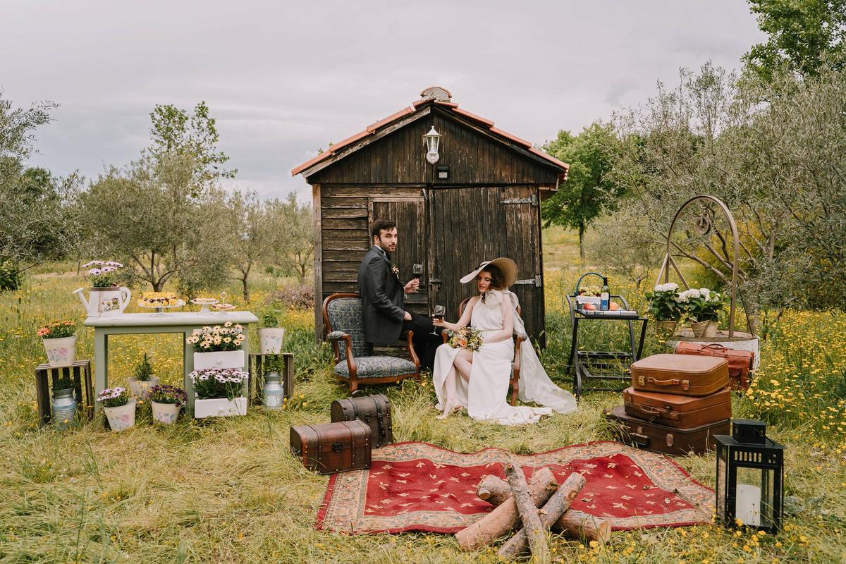 Poco hay que añadir sobre este estilo, es uno de los más conocidos en la actualidad y también pueden hacerse bodas sostenibles. En este escenario jugamos con la idea de los novios degustando de un coctel, o picnic en un ambiente campestre, la pamela de la novio luce espectacular.