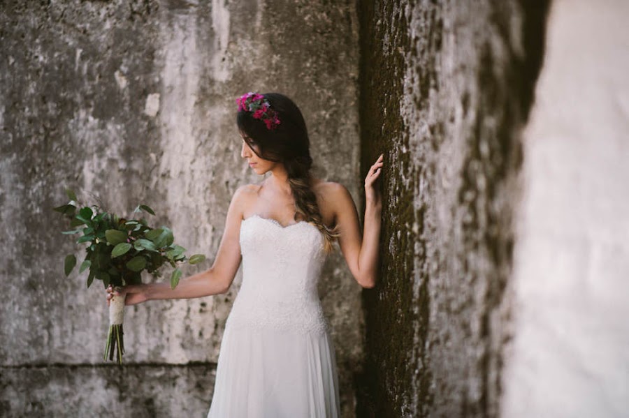 ¡Cambio de escenario! El siguiente shooting, tuvo lugar en la inmesa terraza-mirador del Parador Cruz de Tejeda a más de 1.500 metros de altitud. En esta ocasión, el modelo escogido ha sido un vestido con escote corazón confeccionado en chantilly con pedreria y gasa de seda. Para completar su look, una trenza despeinada y preciosa diadema de flores.