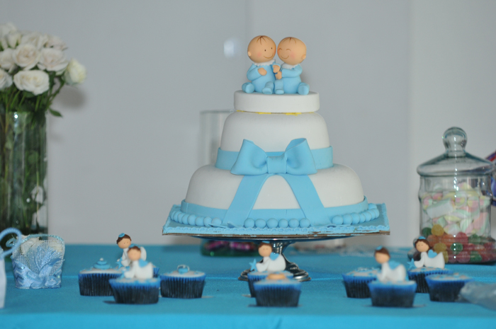 En esta ocasión, el bautizo de estos dos lindos bebés primitos, sus hermanas quisieron juntar la fecha para hacer este lindo evento, Eiden vino de España con sus papitos y abuelos exclusivamente para compartir fecha con Martín. La ceremonia del bautizo se realizó como ellos lo querían, la decoración elaborada también a mano completamente, el tono ... azul ... hubo recreación para los más pequeños... Los pastelitos y la decoración de pastel de Mónica Pulido de Dulces Deseos...