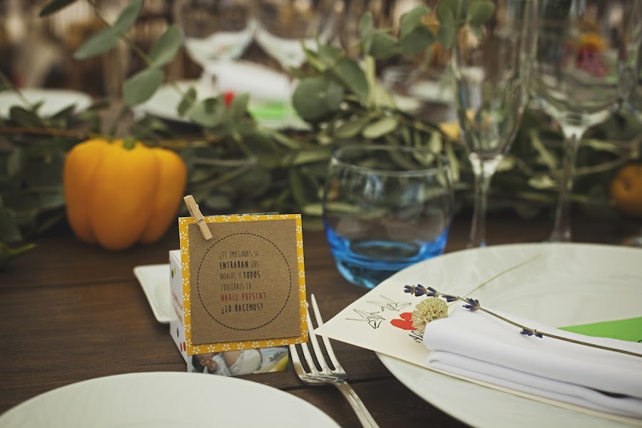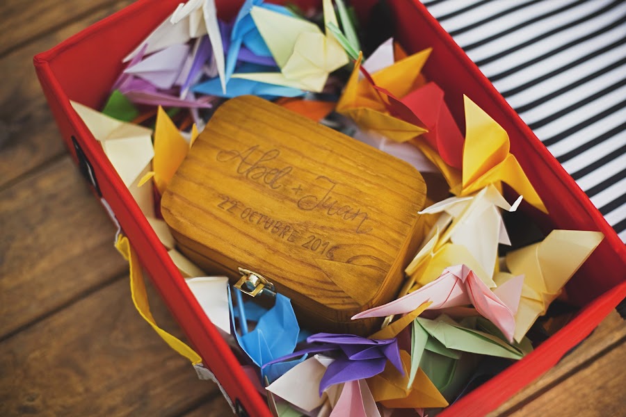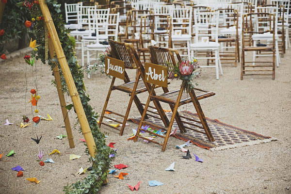 En la boda de Juan y Abel los novios trabajaron como los que más, idearon su logo, Juan hizo más de mil grullas de papel, cartelitos de agradecimiento para todos los invitados, detalles handmade y mucho más.