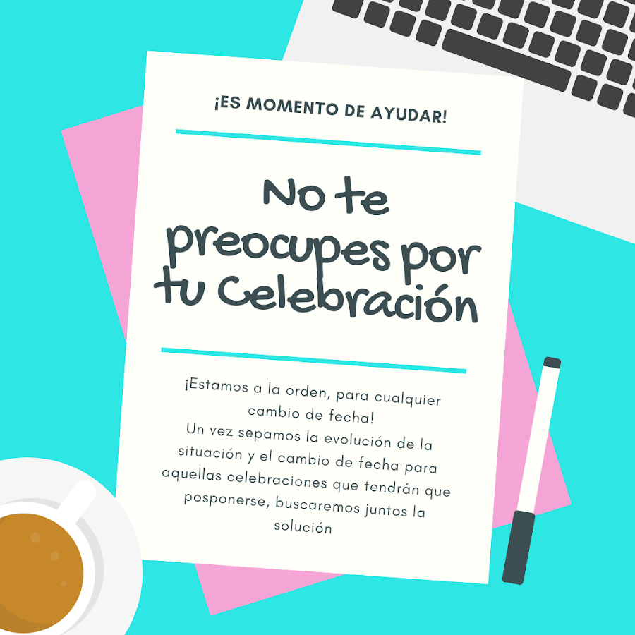 Los que nos dedicamos al sector de los Eventos sociales y familiares, como Bodas, Comuniones, Cumpleaños, etc, nos hemos quedado en "stand by" y desde La Casita de Paula y Eventos JC, hemos paralizado al completo toda nuestra actividad porque la salud y la seguridad tanto nuestra como la de nuestros clientes son lo primero.