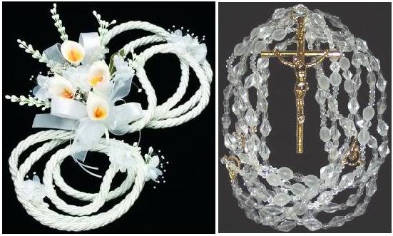 El Lazo Nupcial puede ser hecho de seda decorado con perlas, flores, o un rosario de cristal; existen lazos decorados de flores naturales, azahares, mini-rosas con velo de novia natural o bricho natural, en los laterales de los hombros una orquídea y en el centro tres con listones de seda, o un Crucifijo, los lazos pueden ser color blancos o perla y los puedes decorar con color pastel. Es muy romántico y natural como su amor.
