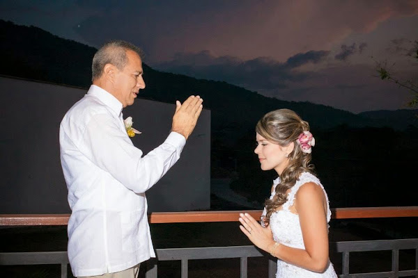 Con su corazón hecho trizas, El es el encargado de entregar a su hija a otro hombre. Cómo crees que El se siente?.... Ahora tú eres la encargada de hacerle un poco más placentero el momento que está viviendo. Debes hacerle saber que él es y seguirá siendo parte importante de tu vida, y que siempre vas a necesitar de su apoyo.
