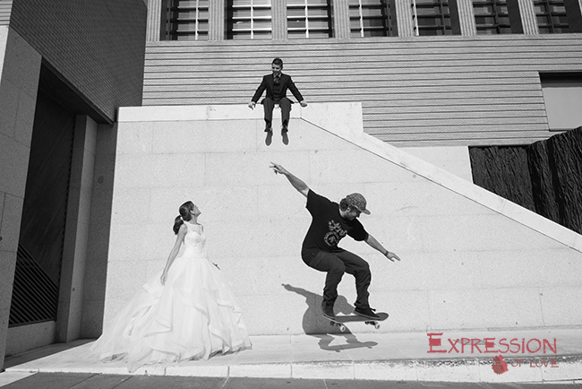 Es por ello, que lo considero un punto importantísimo, y que debes concretar (si aún no te lo has planteado) una cita con tu fotógrafo, que te muestre su portafolio, su forma de trabajar, su propuesta y que lleves una idea de como quieres que sean tus fotos, así evitarás aburrirte durante la sesión de fotos, es tu día y debes disfrutarlo de principio a fin! porque no se si coincides conmigo en que las poses tradicionales pueden ser aburridas, interminables e incómodas, más aún si te ves casi obligada a mantener sonrisas forzadas durante la sesión fotográfica, para evitarlo, lo mejor es que todo fluya, y para que eso suceda, creo que como en todo éste mundillo de la organización de eventos, el fotógrafo debe tener un poco de psicología, debe intentar a través de una entrevista con los novios conocer sus gustos y su personalidad, porque seguro que preferirías que tu personalidad brillara el día de tu boda, que toda la sesión sea divertida, sin tensiones, y para ello estaría bien que también hicieses partícipes de ella a tus familiares, hijos (si los hay), damas, padrinos y si así lo quieres, hasta tu mascota, en instantáneas espontáneas, que es como más bonitas salen las fotos! Ojo, también hay novi@s muy tímidos y tradicionales, que prefieren su reportaje como los de toda la vida, cosa también muy válida y que según como se enfoque, puede llegar a salir muy bonito.