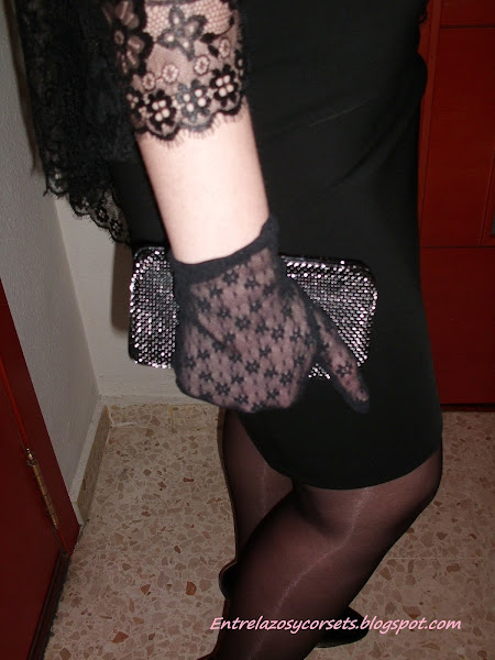 Guantes de blonda y bolso cartera de metal en color azabache