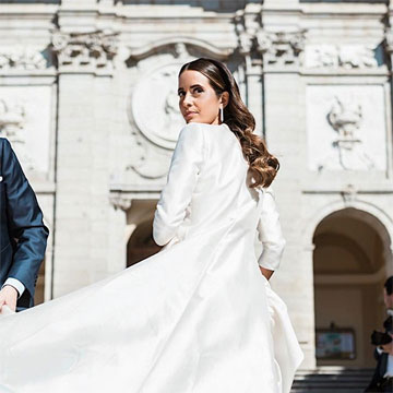 El vestido con capa para la ceremonia religiosa...¡dejémoslo en correcto! Nos parecía que le echaba años...