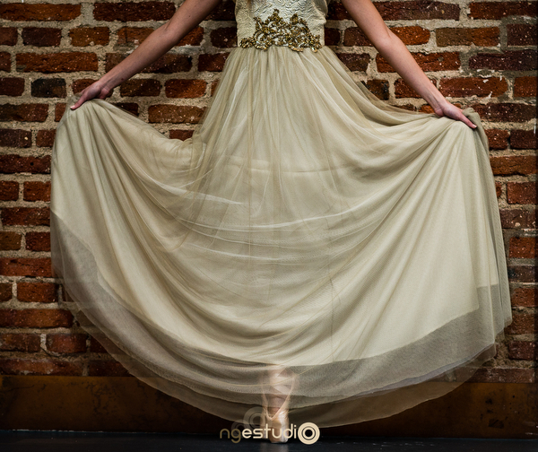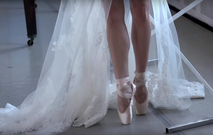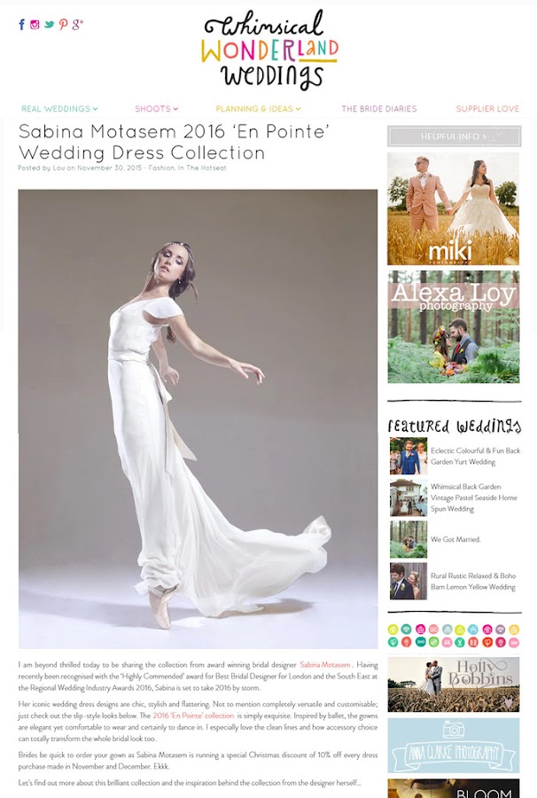 Otra diseñadora de novias Sophie Louise para su nueva colección vestidos de novia 2016 se ha inspirado en la bailarina Genevieve Gosselin y una bailarina posa en puntas en su catálago.