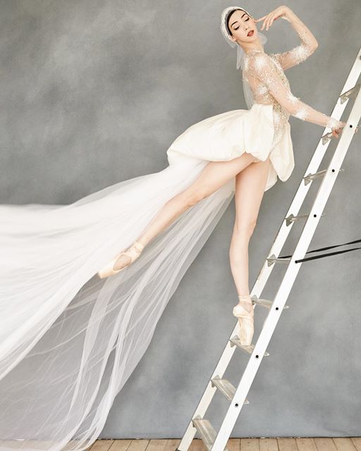 La bailarina Ana Turazashvili, solista del Bolshoi Ballet posa con un vestido de novia de alta costura de Yulia Yanina (2016), si os fijais la foto en la escalera es superparecida a la del Bridges Magazine