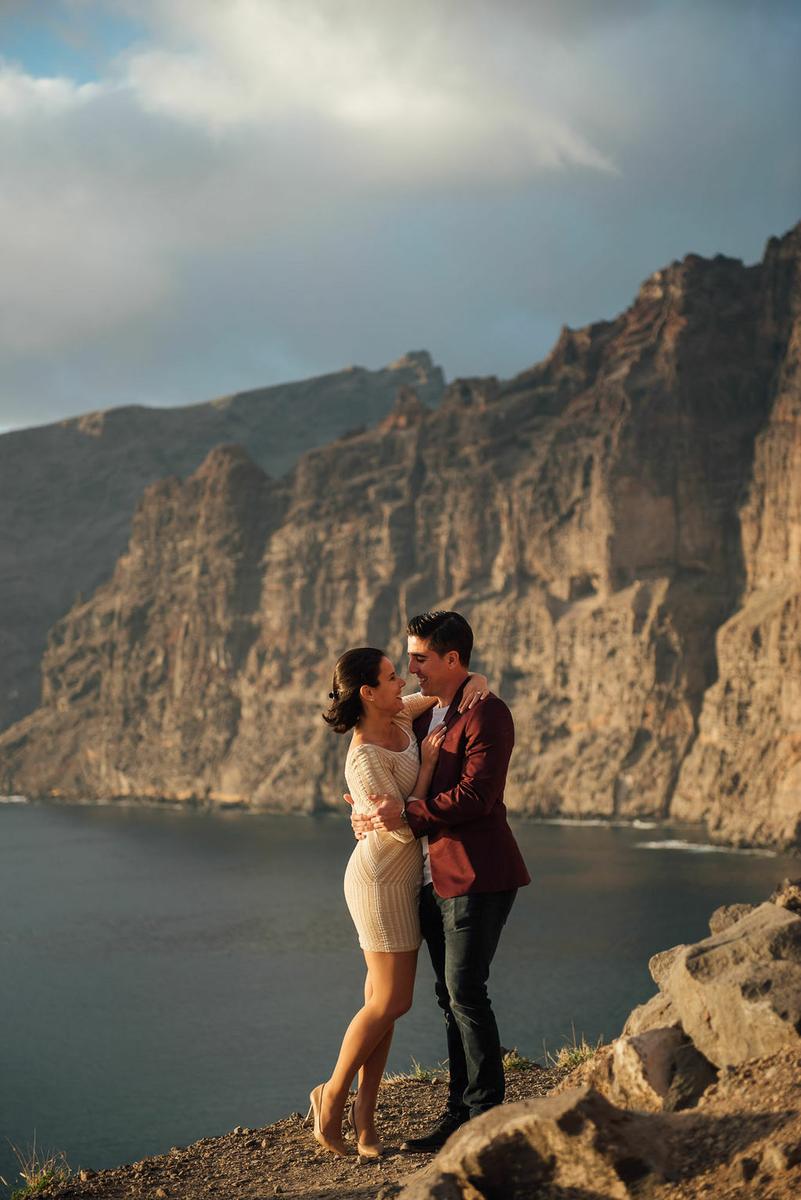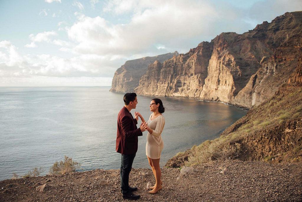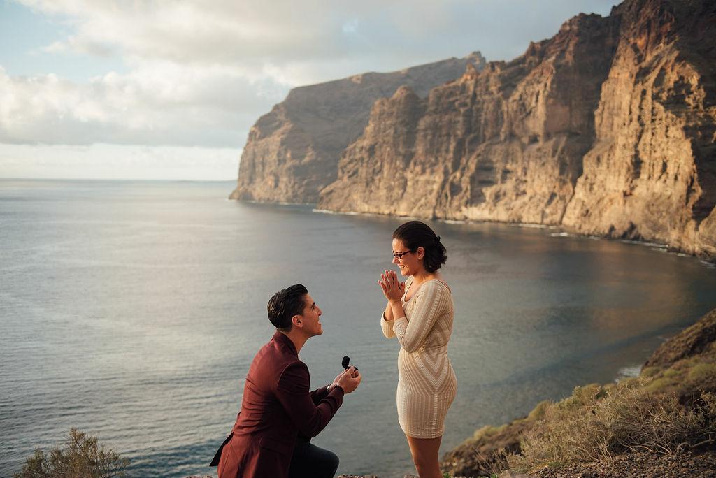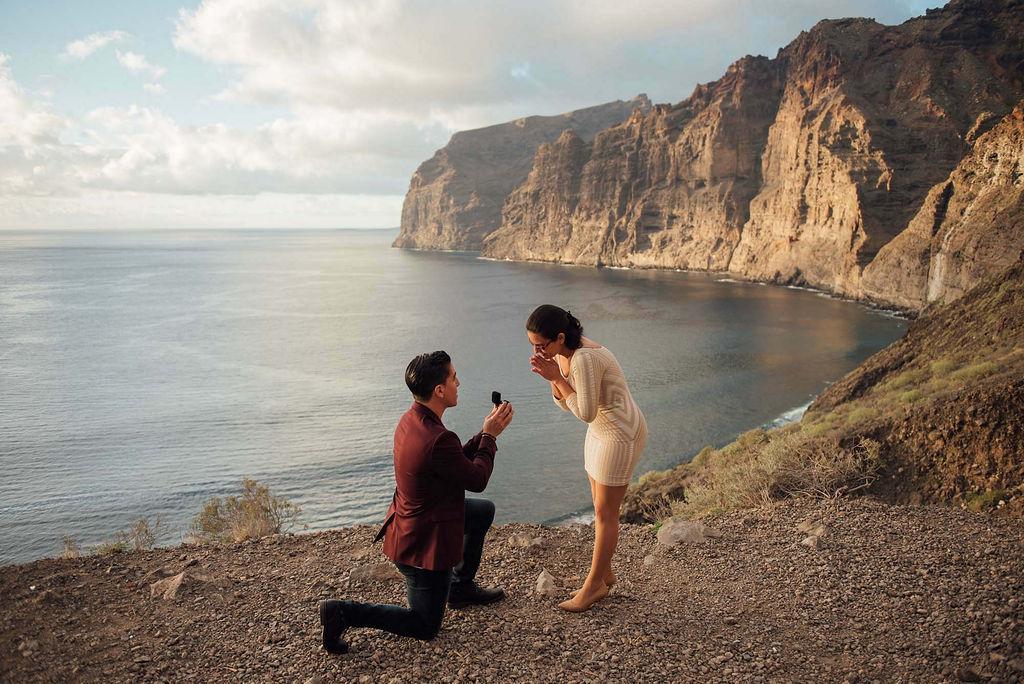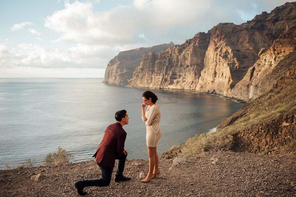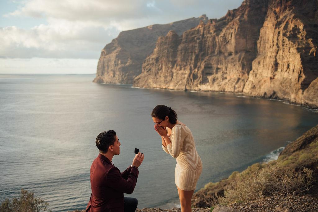 Alex quería sorprender a Grethel en su viaje a Tenerife con algo que nunca van a poder olvidar.Nos pidió encontrar un lugar rodeado de montañas y mar y que mejor que los acantilados de los gigantes para una pedida de mano de lo más épica.