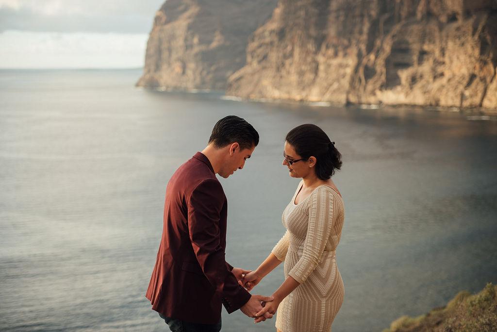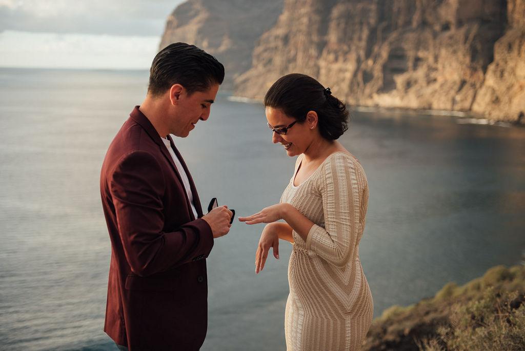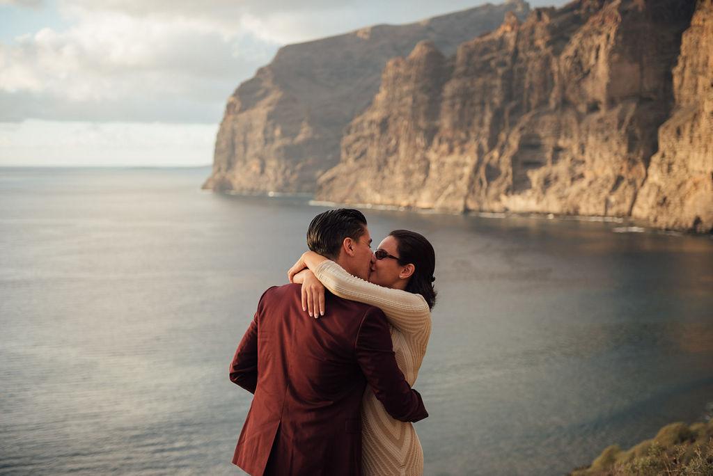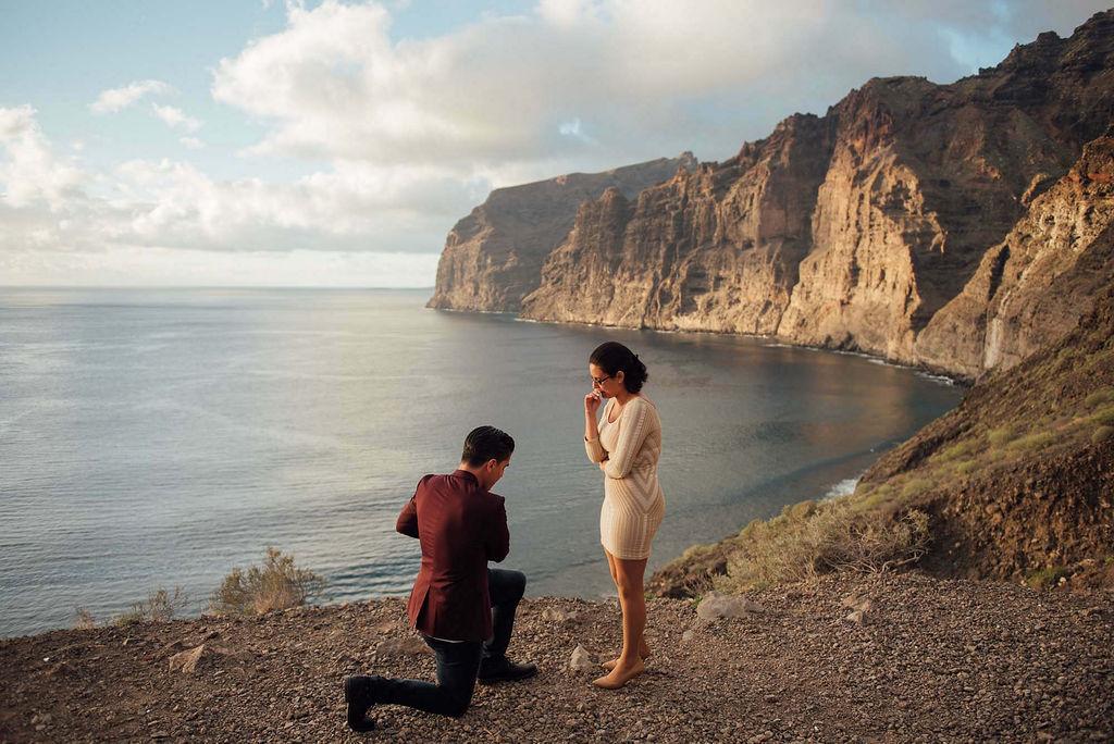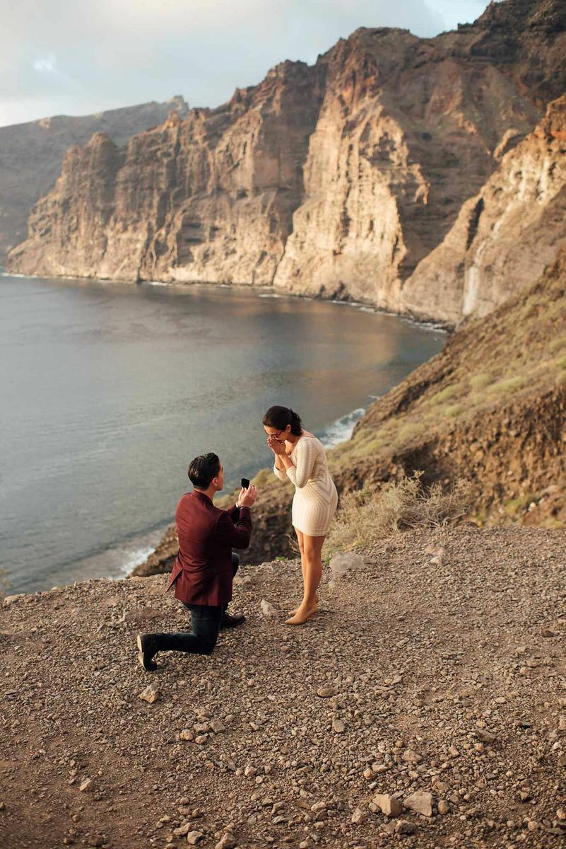 Alex quería sorprender a Grethel en su viaje a Tenerife con algo que nunca van a poder olvidar.Nos pidió encontrar un lugar rodeado de montañas y mar y que mejor que los acantilados de los gigantes para una pedida de mano de lo más épica.