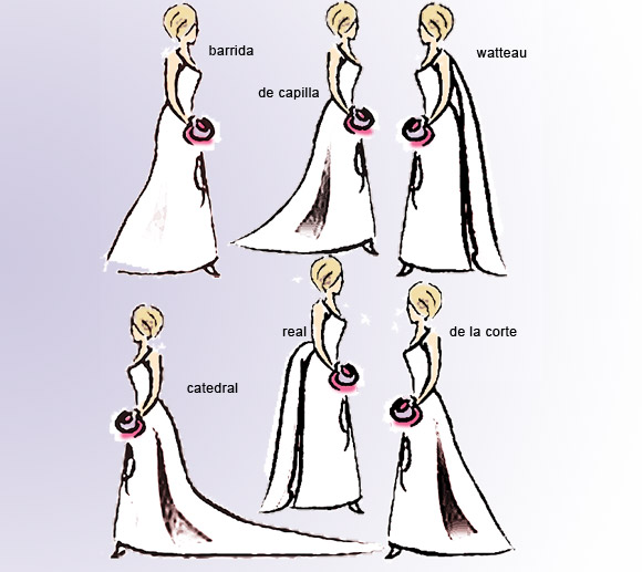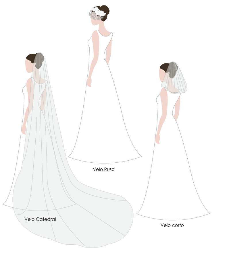 Por supuesto todo esto depende del tipo de vestido y su cola, ya que todo tiene que guardar relación. Un velo corto o ruso no va a quedar tan bonito con un vestido de cola tipo catedral, ya que la cola tan larga no luce igual. Estos son los tipos de cola