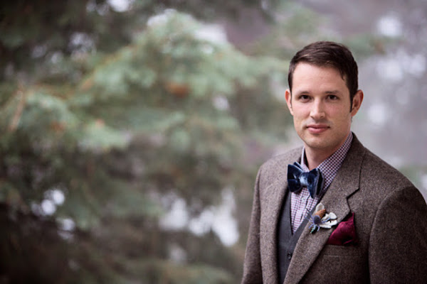 Seguimos perdidos en el bosque con otra boda invernal, con una novia que usa unos complementos preciosos, como son un bolero de pelo de color marrón y una boina de lana en tono beige.