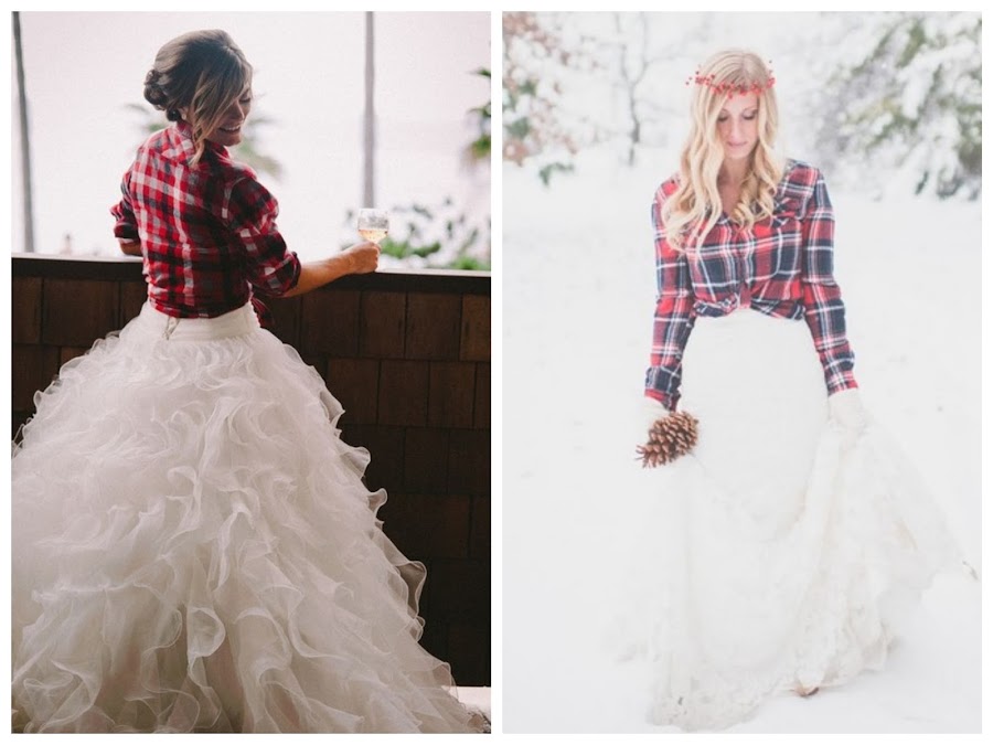 Novias Lumberjack: En castellano, clásica camisa de leñador de toda la vida, un dos piezas con falda de tul y volantes o un vestido con camisa anudada a la cintura. Un look de las montañas perfecto para las novias menos convencionales.