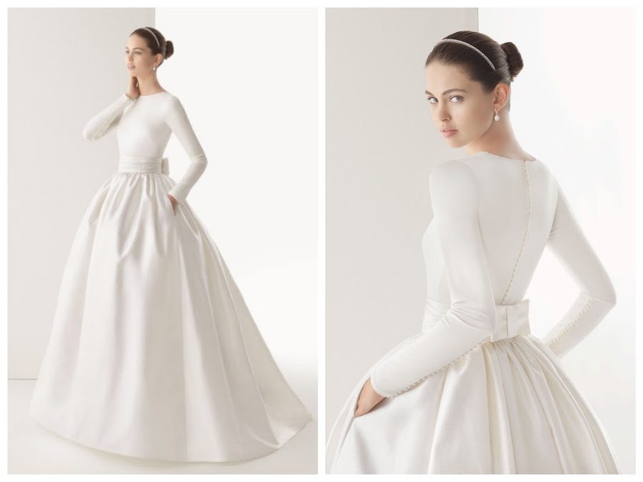 Novias clásicas: Vestidos de novia con manga larga para no pasar frío como éstos de Rosa Clará.