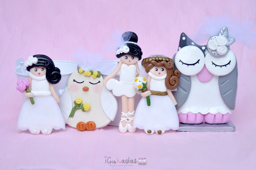 Os enseño algunas de las más representativas, pero hay muchas más, personalizadas y sin personalizar, he perdido la cuenta de cuantas novias búho he hecho para tartas, así que aquí las tenéis.
