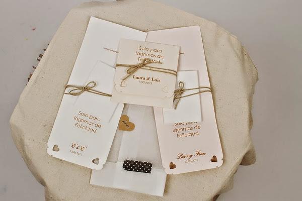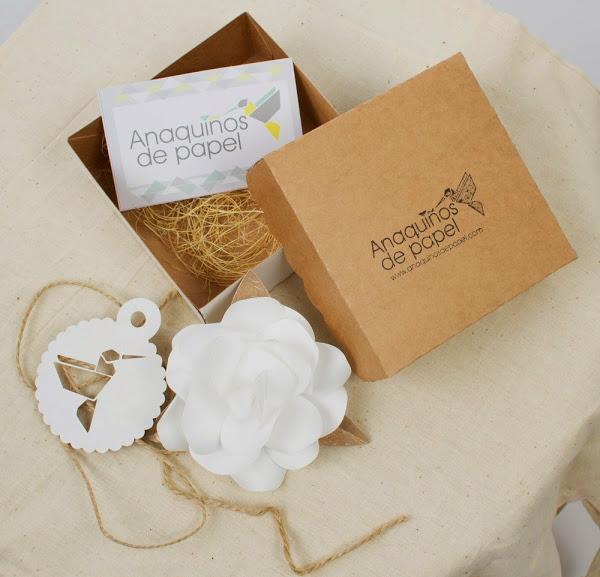 Una cajita para guardar los detalles de los invitados de muestra mas unas románticas etiquetas de la mano de SELFPACKAGING.