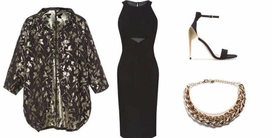 El cuarto conjunto es perfecto para bodas de noche, pues el negro es la base de sus prendas, un color que destaca por la elegancia y la sofisticación, pero más reservado a eventos de tarde-noche. Así, tanto el kimono como el vestido son de Zara, así como los complementos, para los que hemos escogido unos zapatos negros con detalles en dorado y un collar de cadena dorado.Agradecimientos: Pull&Bear, Zara, Stradivarius, Mango, H&M y Massimo Dutti
