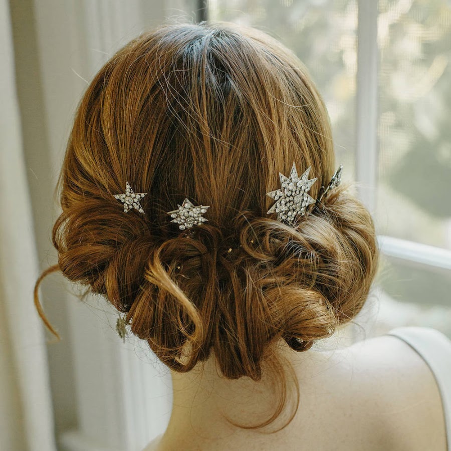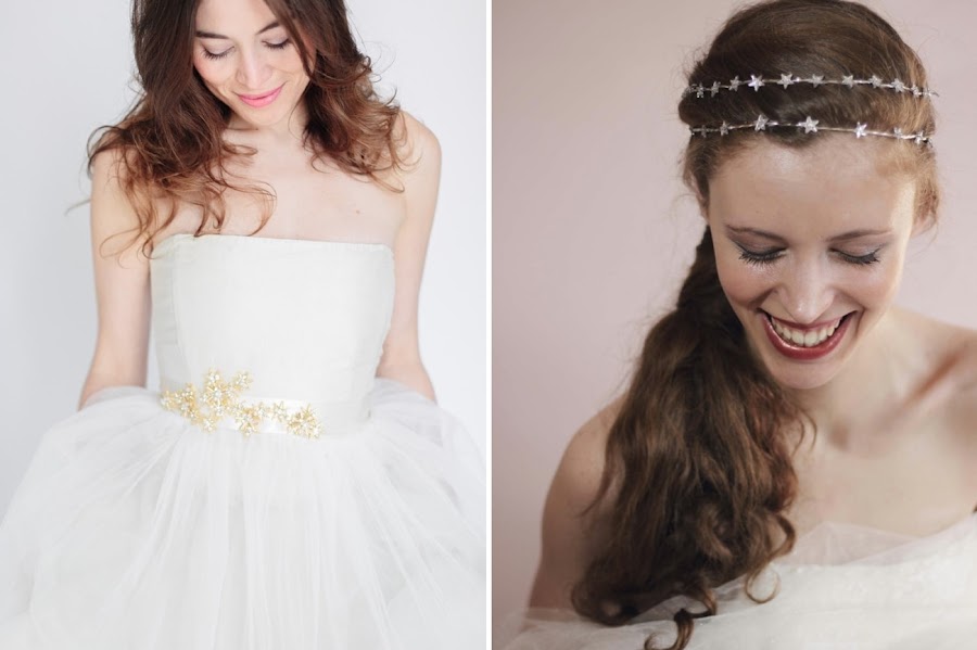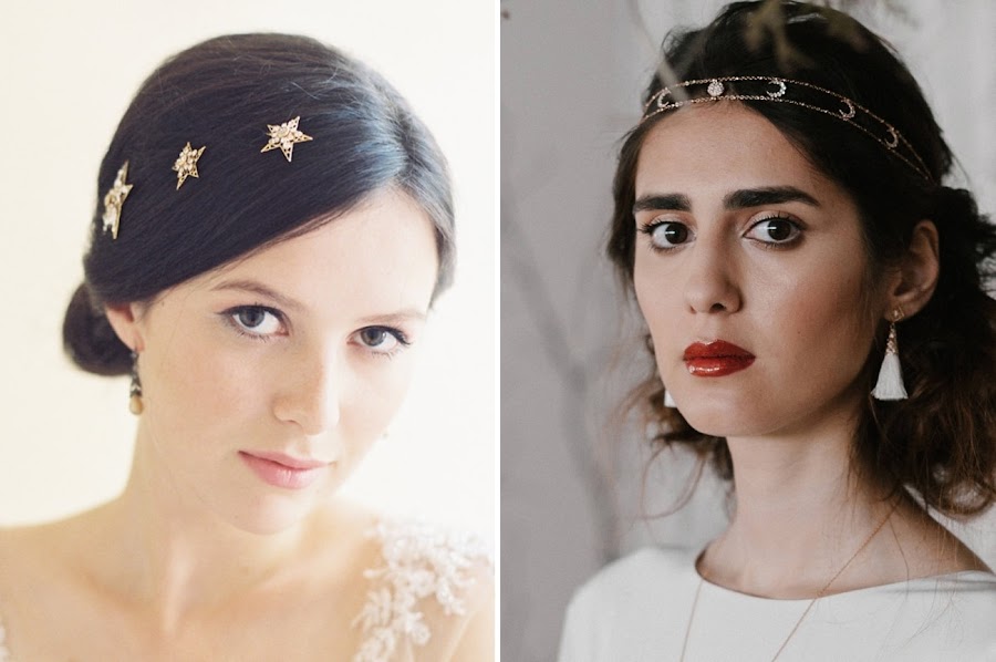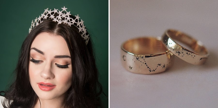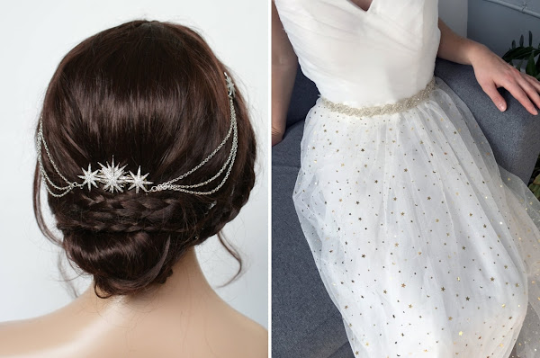 ¿Has pensado llevar un velo lleno de estrellas?, o quizás ¿una corona? ¿O un tocado?...Hay muchas posibilidades como por ejemplo en los anillos de boda, pendientes, un bonito cinturón para colocar sobre el vestido de novia, y te aseguro que darán un toque chic, a la par que etéreo.