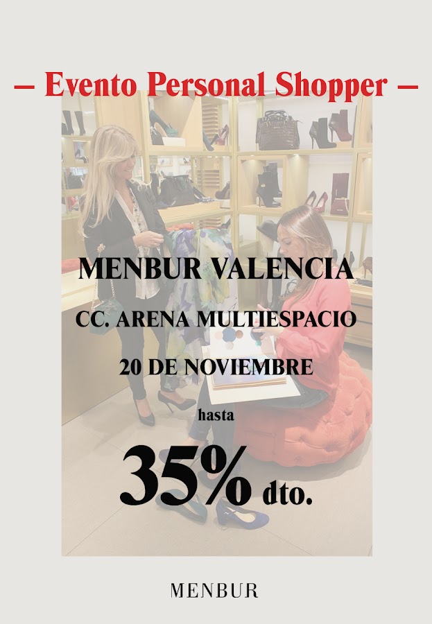 Hoy vengo a contaros un poquito sobre el Evento Personal Shopper que tendrá lugar el próximo 20 de Noviembre, de 10:00 a 22:00 en la tienda de Menbur del CC Arena Multiespacio de Valencia.