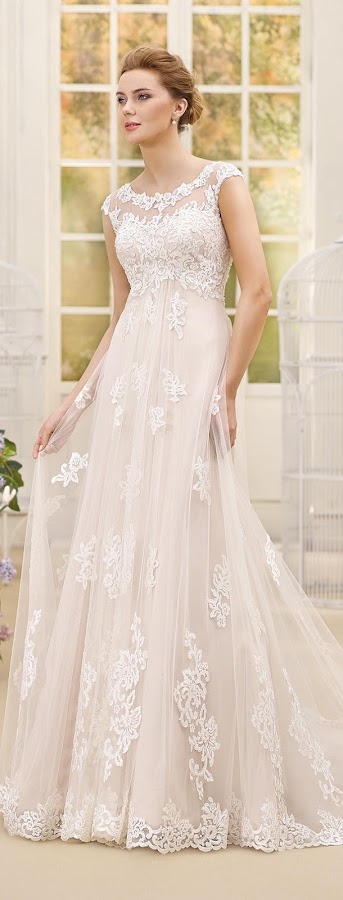 Los encajes se llenan de hojas y pequeños ramos de flores, juegan a la perfección con los drapeados, transparencias y cinturones de strass. Y si eres de las novias a las que le gusta innovar, puedes elegir entre sus diferentes tonalidades de rosa palo o melocotón.. ¿Qué os parece la nueva colección?.