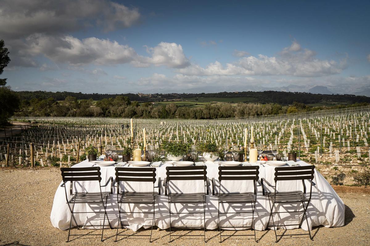 Olivos, cipreses, lavandas, limoneros, pinos y 10 hectáreas de uva autóctona (Callet, Prensal Blanc, Giró Ros y Monastrell) que conviven en perfecto equilibrio. Un paisajismo que invita a la calma con kilómetros de cuidados caminos.