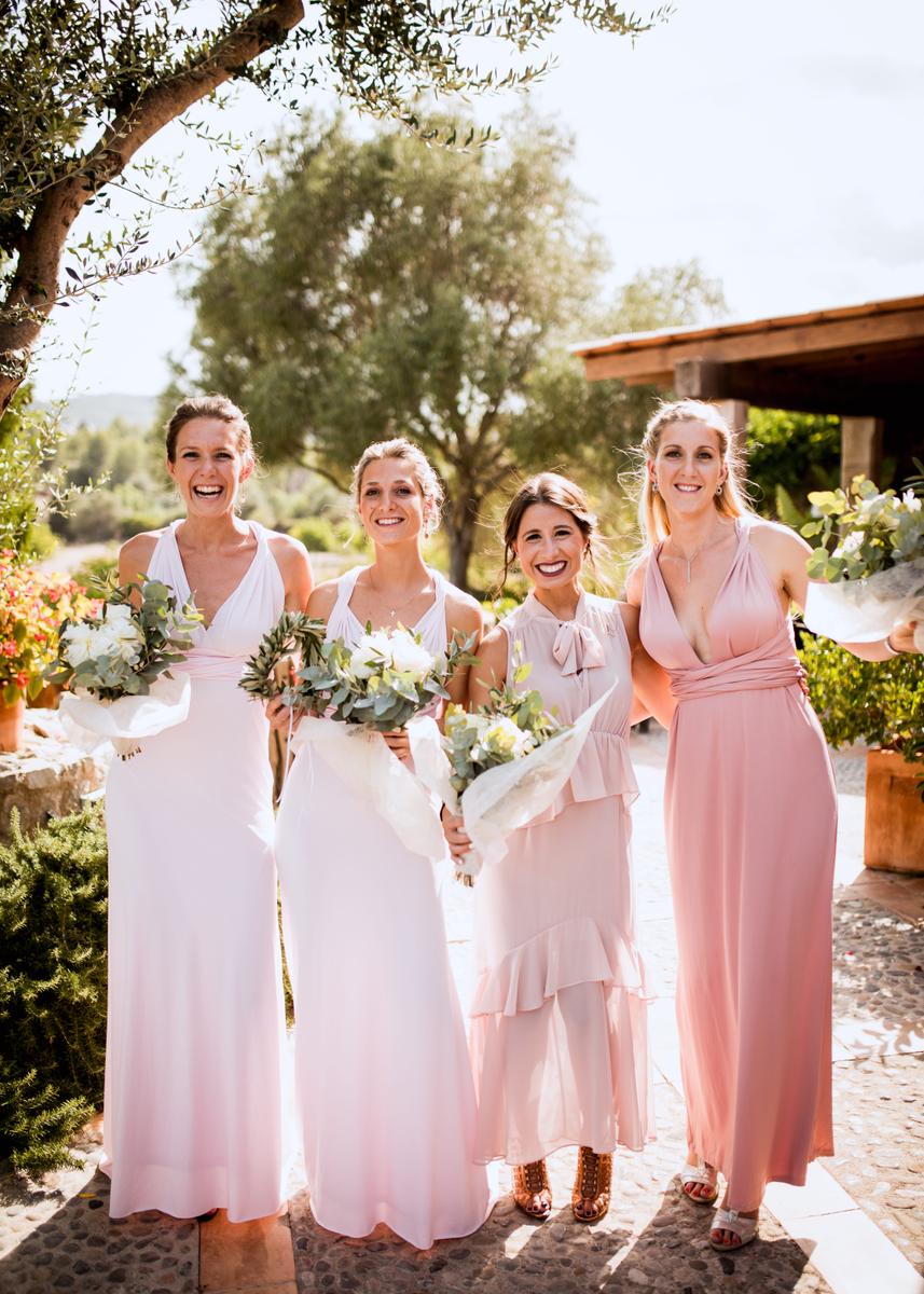 Los colores de las damas de honor eran de color rosa pastel con bouquet blanco y verde.