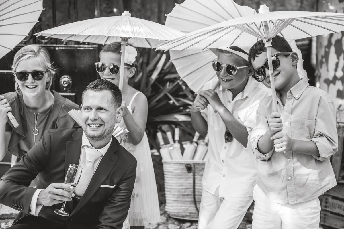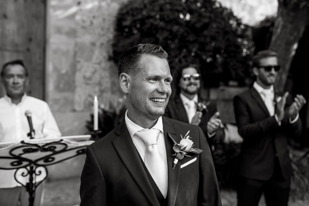Cuando el novio estuvo listo junto a sus bestmans, se dedicaron a recibir a los invitados con limonada fresca en la Finca de Son Togores mientras esperaban ansiosamente la llegada de la novia.