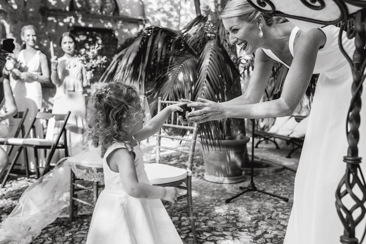 La boda se celebró en la finca Son Togores, en una ceremonia muy original y divertida. Flavia tiene una gran reputación entre sus amigos y familiares por ser creativa y por eso no es de extrañar que cuando convocó a todo el mundo a una gran fiesta en el Marhes justo una semana antes de la boda, ¡nadie se la quisiera perder! La boda fue una gran sorpresa para todos por lo que nada más recibir esta invitación todo el mundo planificó y reservó sus billetes para no perderse la boda. Conociendo a la novia, las expectativas eran muy altas.