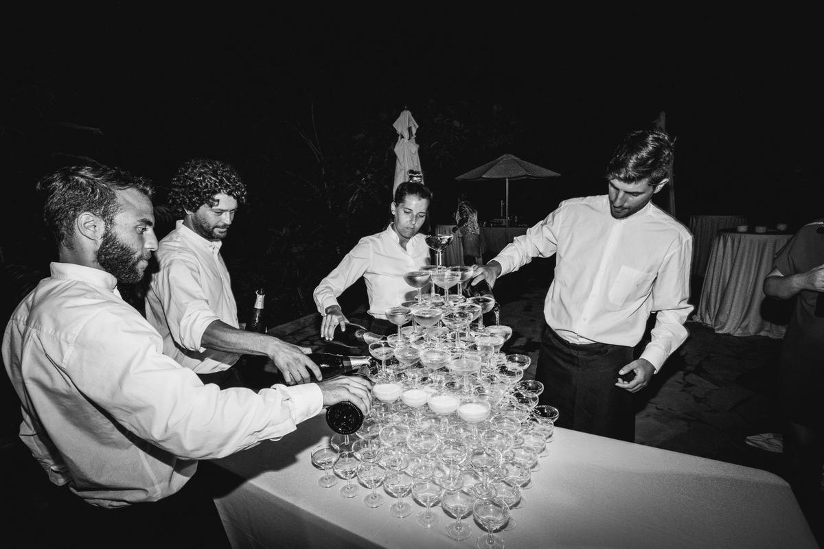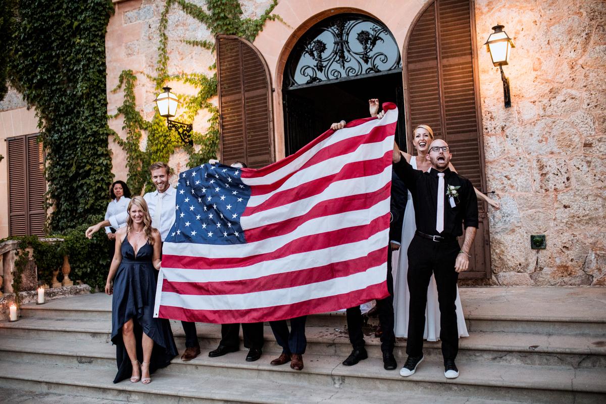 Prosigue la novia “Juntos recogimos todas las banderas de los países y pasamos la noche anterior a la boda hasta las 4 a.m. para seleccionar y seleccionar la música para las presentaciones. Cuando llegó el momento, sorprendimos a los invitados agitando la bandera de sus países y tocando una canción y les pedimos que subieran al escenario para bailar con nosotros. Todo se transcurrió muy bien y todos quedaron boquiabiertos con todos los espectáculos sorpresa que habíamos ideado coordinados por Sara y el equipo de Moments.”