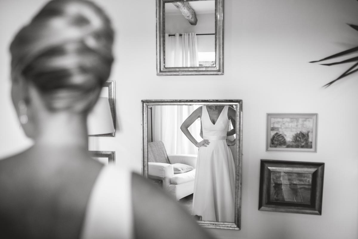 Llegado el gran día, los novios se prepararon en fincas separadas rodeados de sus más allegados. Daniel y sus bestmans iban de azul marino con camisa blanca, como cuenta el novio “Flavia y yo encontramos el traje después de un largo día de compras en Barcelona.”